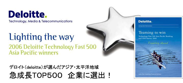 ア太地域を対象にTechnology Fast 500 Asia Pacific 2006 Awardが昨年12月12日香港で、開催され、デロイトア太地域の急成長TOP500企業は過去3年間の売上げ金額成長率に基づいて企業などを対象に選ばれました。