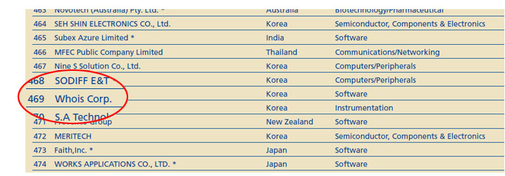 選出されたTOP500企業中の韓国企業は100社が含まれ、韓国がア太地域の情報通信市場を先導しているということを表している。