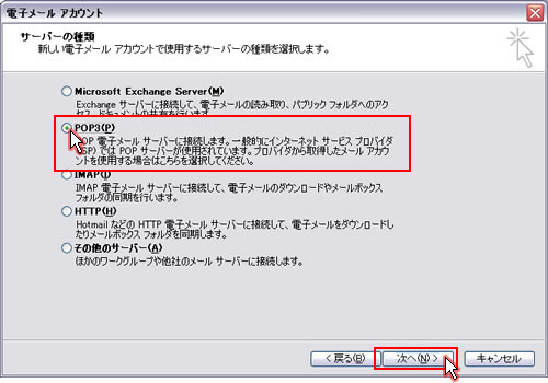 サーバの種類を選択します。
