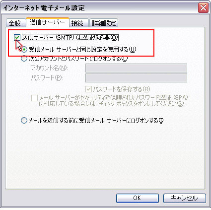 メール サーバーへのログオン情報