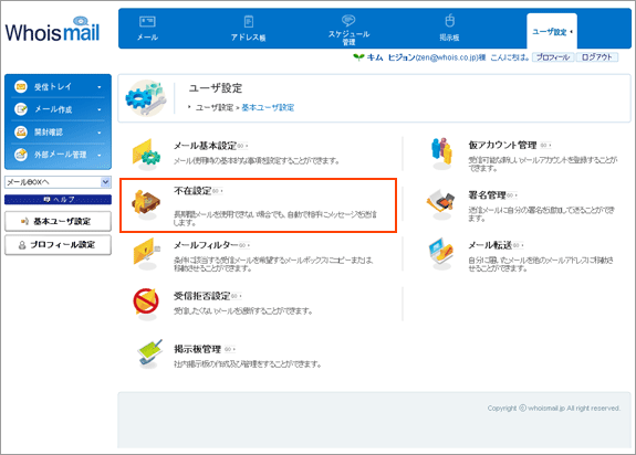 不在設定を利用すると、長時間メールを使用することができない場合に、メールを受信した