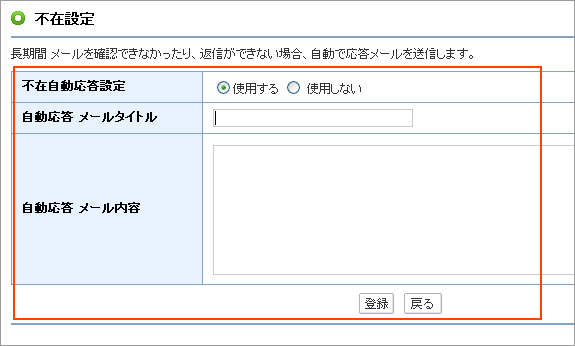 長時間メールを使用できない場合に、自動で相手にメッセージを送信することができます。