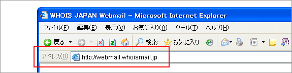 ウェブメールのログインURLアドレスは http://webmail.whoismail.jp です。 エクスプローラ等のウェブブラウザに、上記URLアドレスを入力すると、下記のようなログイン画面が表示されます。
