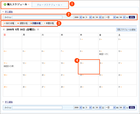 - 個人スケジュール: 本人だけが管理することができるスケジュール。